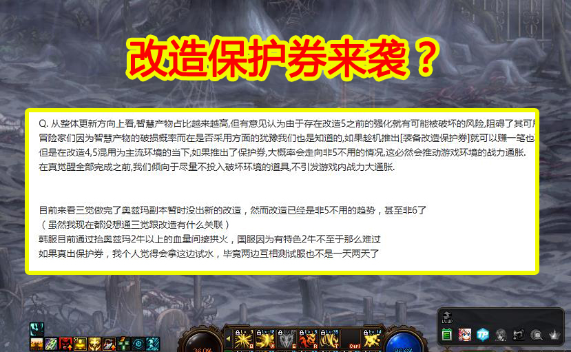 总结:改造作为新出的系统和装备,取代增幅是历史的必然。这就像当年增幅取代强化一样!改造保护书的出现,也是为氪金主播量身打造的!