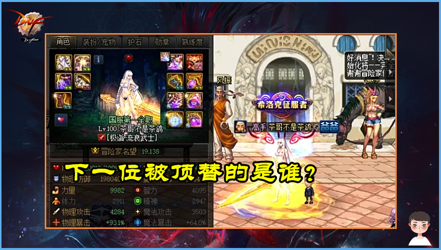 如果说之前大家还认为,没人会威胁到国服第一的地位,那么这次狂人的经历就是最好的例子:之前是国服第一,今后就一定是国服第一吗?那也未必;今天出了一把红20巨剑,明天就不能出一件红21耳环吗?那也未必!