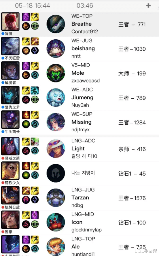 WE在夏季赛转会期也有人员变动的消息流出,V5中单小东北跑到WE试训,WE试训小东北是跟LNG打的训练赛,有趣的是,LNG上单不是M1kuya,这恰好证实前面TES试训M1kuya的消息。