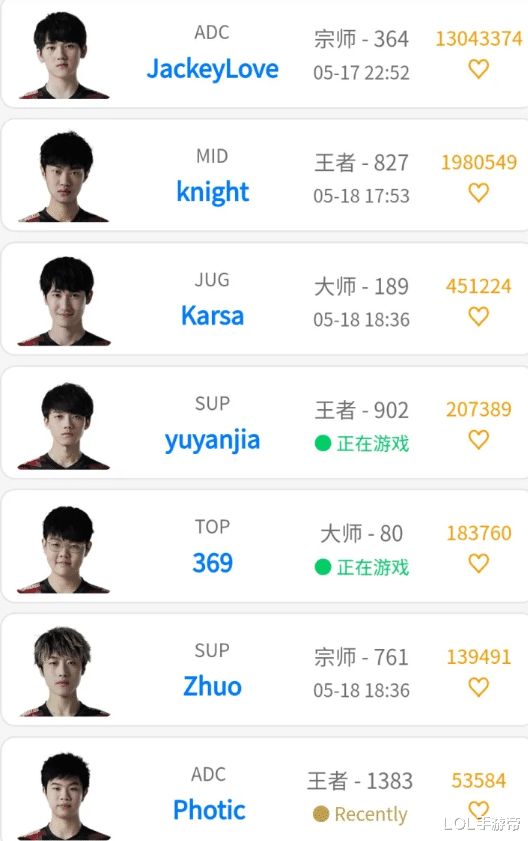 5月18日晚上7点,TES的其他选手都没有打排位,只有369在排位,虽然TES试训上单的比赛记录被删除,但TES试训的上单人员还是被公布出来,四名上单分别是小老虎、M1kuya、山鸡和晴天。