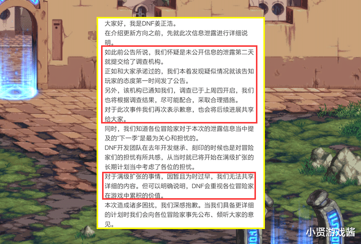 这次姜策划开始就针对“105版本”泄露一事进行发言,表示此件事目前的状态,并再次对玩家进行道歉,不过对于会不会有105满级扩张这件事,并没有透露,也就是说还是有扩张的可能。与此同时,针对这次姜随机发言,也为也带来了5个消息的透露。