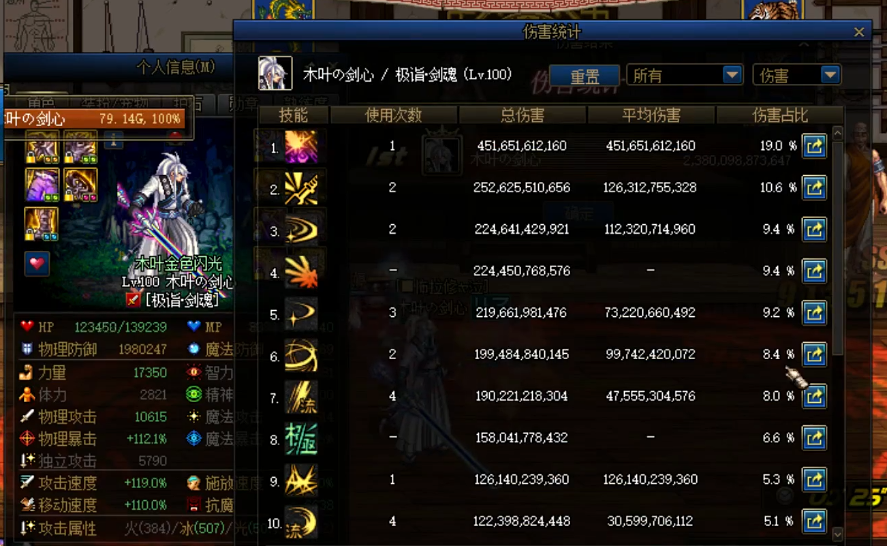 你会发现,Eiji的打法,跟木叶并不太一样。都是复古传奇手游pk25S绿沙袋打桩,在技能伤害统计处,却能感受到差别,木叶的剑魂小拔刀3个,而Eiji是4个。两人的手法,有着自身特点,木叶没学“破军战龙击”技能,但Eiji放了2个!