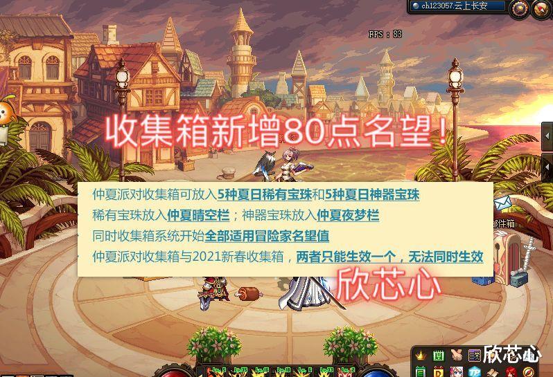 本次夏日礼包收集箱为收集5颗稀有与5颗神器宝珠。效果约为新春收集箱属性的一半,每颗宝珠增加8点名望值,也就是收集箱满的话,账号内所有角色会增加80点名望。需要注意一点的是,今年新春收集箱与夏日礼包的收集箱,两者只能生效一个,无法同时生效,所以土豪玩家们也得注意一下。