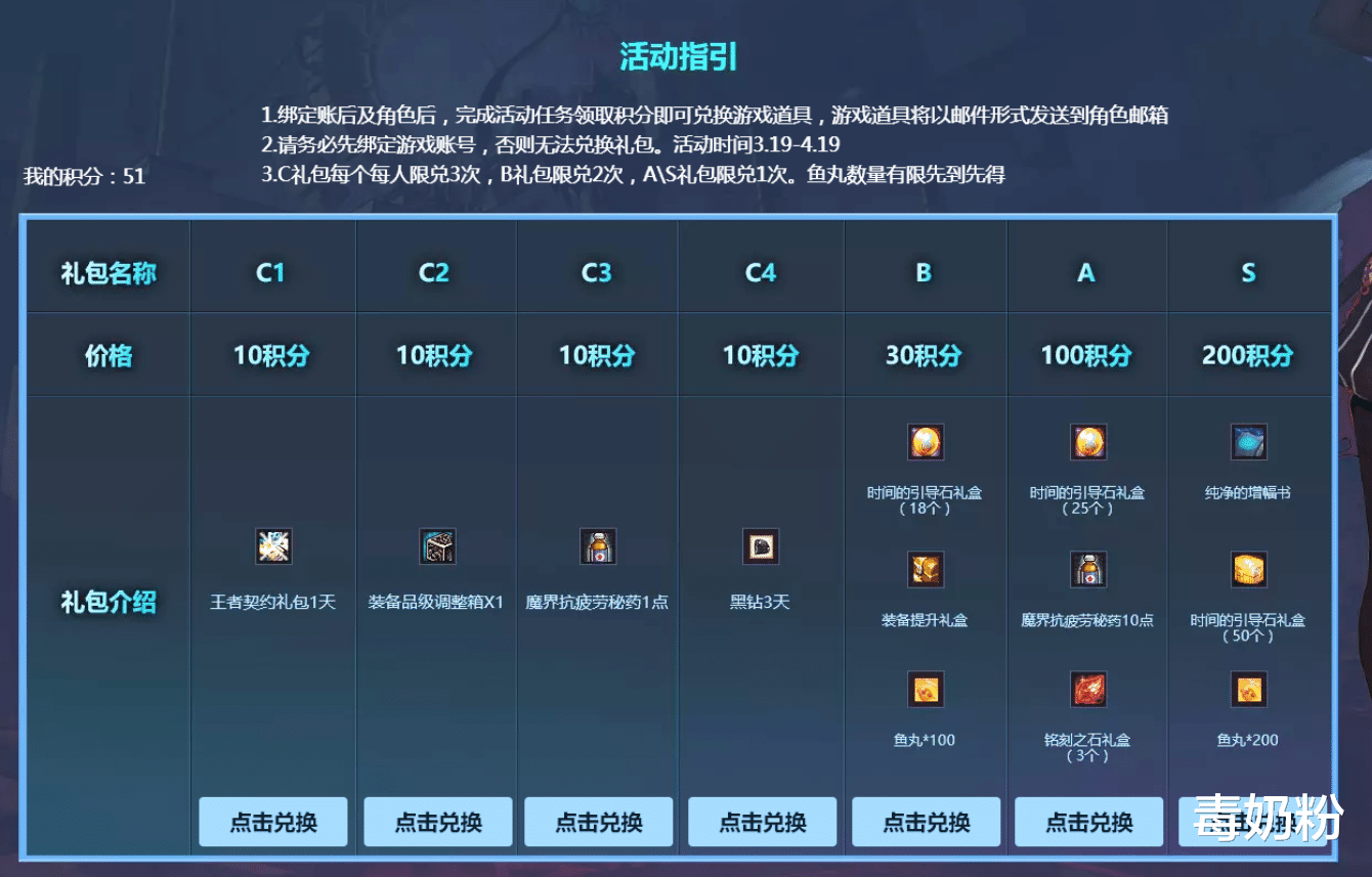 斗鱼的这个DNF活动已经开始一周多了,持续到4月19号,分为三个礼包:绑定、回归、积分。斗鱼绑定DNF角色就可以领奖励,分别是:契约3天、黑钻7天、鱼丸50个(这个可无视),不过回归奖励却有30点PL药、1张升级券等,智慧的引导又能多刷几次了。