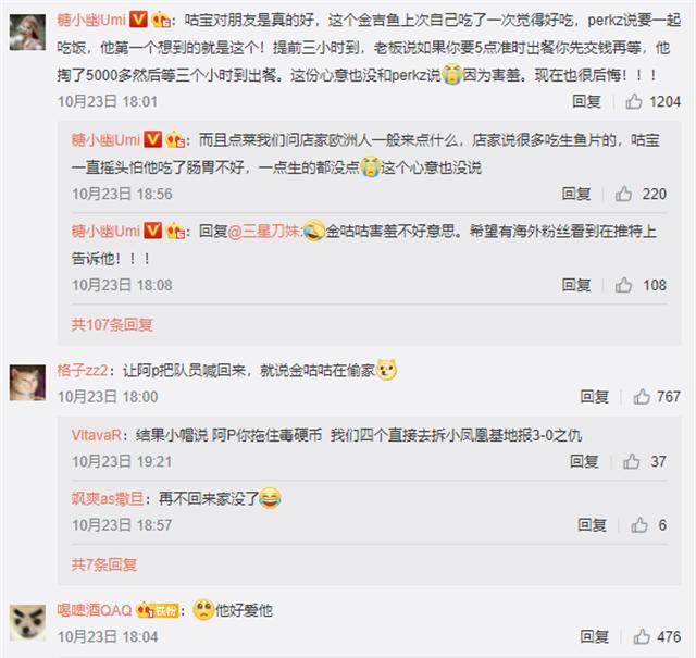金咕咕为了跟朋友一起吃饭,无奈当了一次“送餐小弟”,没想到,最终还是无法请g2的选手吃饭。很多粉丝在艾特G2战队,让他们知道这件事情,好好整活。最重要的是,不要辜负金咕咕的心意。毕竟,他自己一直不好意思说。现在g2已经在备战半决赛,金咕咕应该也不想打扰他们吧。