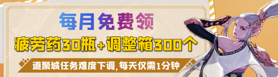 如今,道聚城获取聚豆的任务难度下调,每天仅需1分钟,每月就能拿到30瓶疲劳药+300个调整箱!