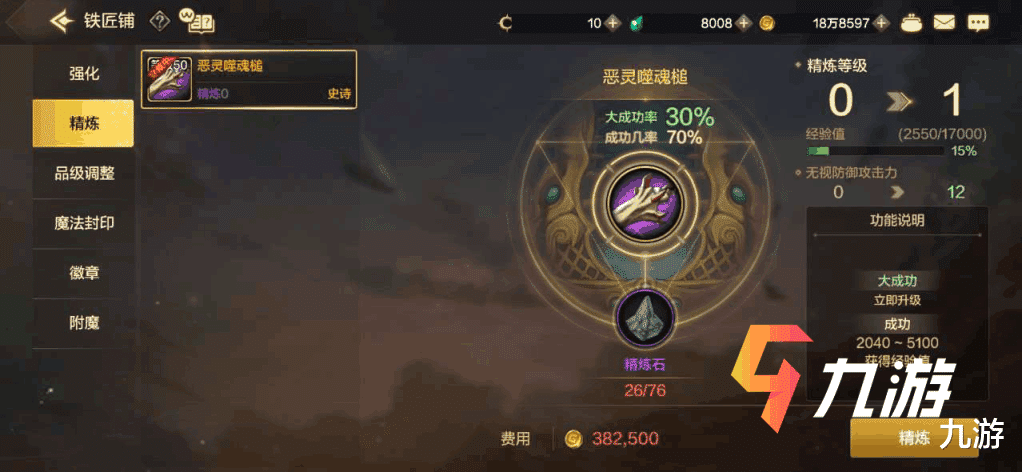 【精炼】:精炼所带的无视防御力的攻击力,可以很好的针对迷妄之塔中防御力很高的怪物。不过只推荐大家精炼本职业的毕业武器。例如鬼泣拥有无影剑等等。精炼所消耗的资源是相当庞大的,当然带来的提升也是最为显著的。