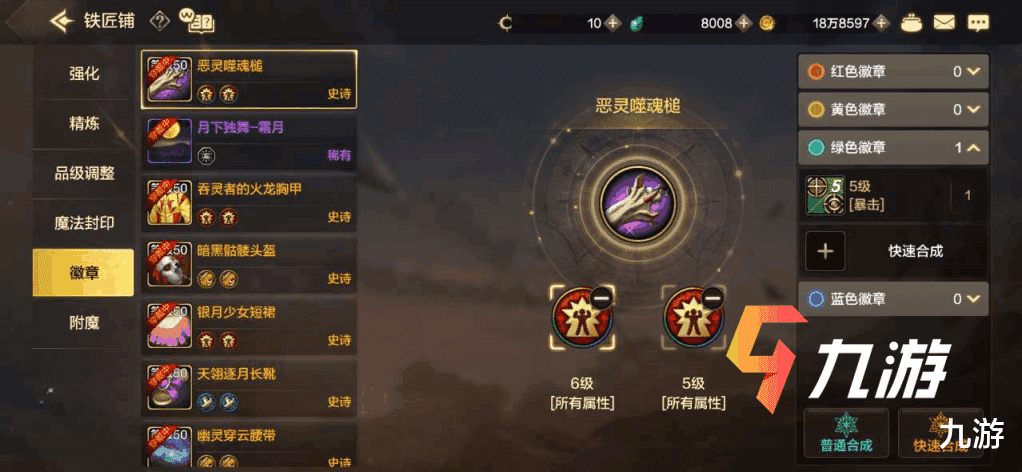【徽章】:大家每一天不同颜色的徽章可以合成一个5级的,也就是每隔2天可以获得一个6级的徽章,大家可以等一身凑齐6级徽章后再去进行调整,徽章带来的属性提升还是很明显的,当然还可以参与冒险者的游戏获得特殊的白金徽章,战力提升更为明显。