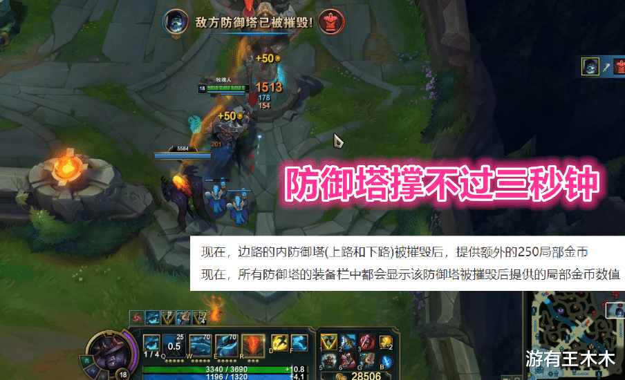 那么破舰者的拆塔速度到底有多快呢?另一名无情的拆塔机器牧魂人就有话说了,在满级六神装的情况下,约里克一个爆破能打出两千伤害,即使高地塔在他面前也撑不过三秒钟,这比爆破鬼才的W还要夸张吧?如果对面单带上单被养肥一千万倍爆率传奇,那己方上单根本没法抗压防守,即使缩在塔下也没用,对方先三秒拆塔再杀人,至少得派三个人才限制住他!