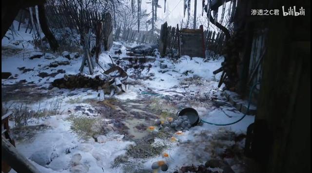 例如玩家初入「村庄」时,整个环境充斥着边陲乡村的萧条。玩家不时能听到家畜的叫声、望见远处转瞬即逝的人影。进入屋内,桌上是还正冒着热气的炖菜,而另一边却是布满血迹与动物爪痕的卧室。运用遗留的生活气息与破坏痕迹之间的冲突,「村庄」呈现给玩家平静村庄突遭灾祸的死寂感。
