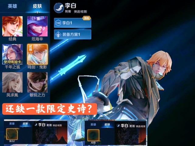 另外,还有另外一个原因,那就是在春节期间李白被曝光了两个新皮肤格子,目前只上架了一款新皮肤,就是典藏鸣剑曳影。根据李白已拥有的皮肤而言,他还缺一款限定品质史诗皮肤,那这次凤求凰突然返场,会不会是提前收割一波,然后在不久的将来,再推出一款史诗新限定呢?这种套路已经屡见不鲜了。