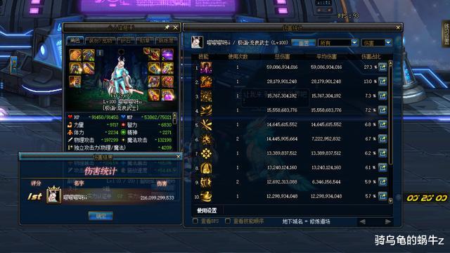 大幽魂九件套和龙血2件套,简单的测试20秒总伤害为2627亿,其他技能分布为:
