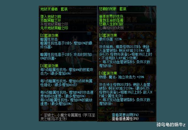 地狱求道者套装效果属性地狱求道者增加10%的最终和10%的白字,16%的技能攻击力和40点属强;残骸增加都会是23%的最终伤害和29%的三攻,并且还有削血的属性,在韩服的实测中,希洛克团本中里带上一个悲剧残骸的职业,可以快速的对希洛克领主削血,成为希洛克团本中最强的一套散搭。