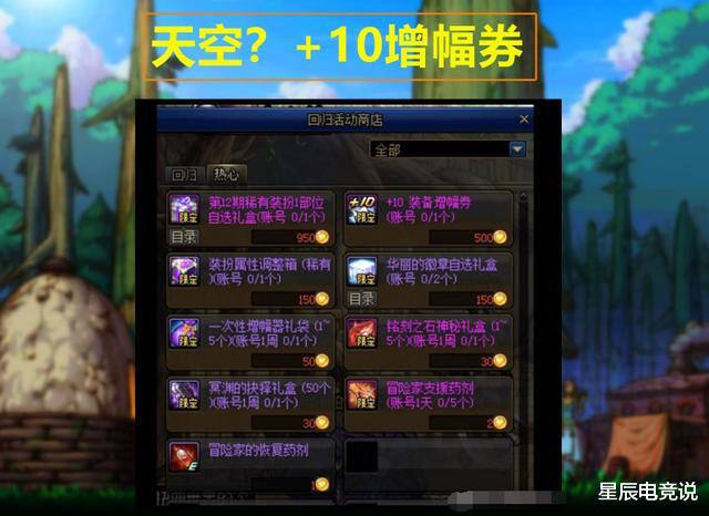 最高奖励是一个天空单件,还是最新的12期。现在天空已经贬值很严重了,春节期间时装可以交易,大量玩家合出整套天空,前一段时间的缝纫机活动更是全部天空返厂,如今一个12期单间说实话没有玩家看在眼里。比较好的是两种道具,+10增幅券和华丽徽章自选,很多玩家能够白嫖一身红10增幅就是通过这样的活动积攒出来的。如果你不想止步于红10也可以拿它当一个垫子去冲击红11,自选徽章礼盒是里面新开传奇世界私服sf的重要道具!
