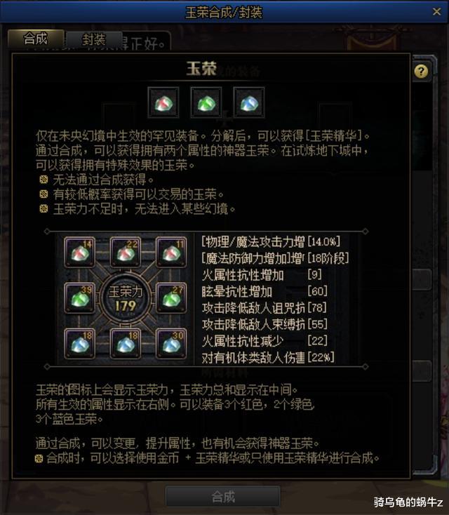 合成可以用任意的品级进行合成,系统会自动将好的属性替换差的属性。这些属性可以在任意地下城中适用。