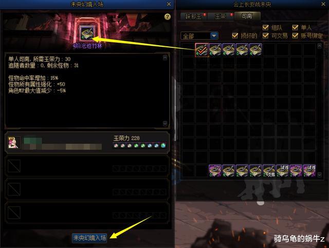第四:司南。司南就是进入未央幻境的门票,击杀领主时随机掉落本阶段或者下一个阶段的司南,司南又分为单人、组队2种,可交易和不可交易2种、还有试练类型的司南,试练副本有几率出更好的奖励,价值更高。