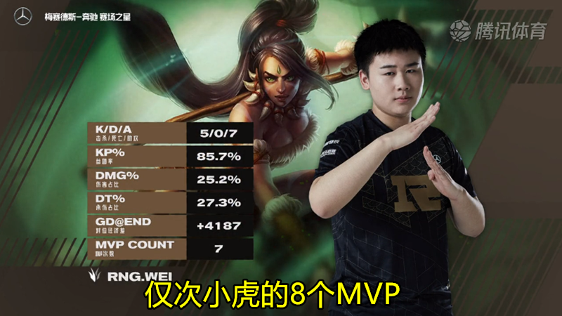 而这局比赛也因为wei镖的很准,加上比赛的节奏完全是他带动的,以及5-0-7的完美KDA,所以他是再次拿下MVP,这也是他本赛季的第七个MVP了。