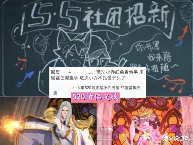 另外周瑜小乔有个好消息,通过诸葛亮更新的黑板内容,鱼和音符,他们或许会获得520情侣皮肤,而且据玩家的爆料,新皮肤周瑜会变成蓝色的键盘手,小乔会去掉丸子头的锚点,成为红色吉他手,如果真这样,那他们的技能就很有意思,周瑜用键盘怎么放火海,小乔扔吉他?